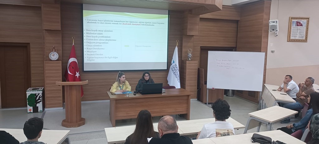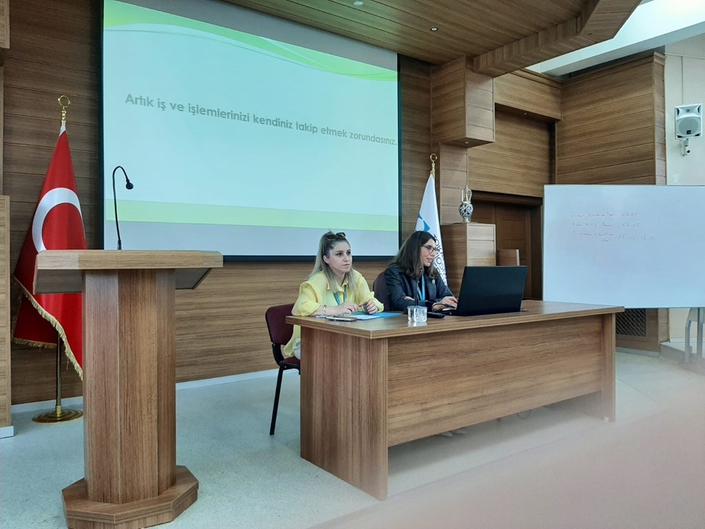 The staff of the Registrar's Office, Chef İrem Ünveroğlu and Şef Elvan Demir, informed the student advisors about the duties of the student advisors, the student information system and the subjects that the students should know.